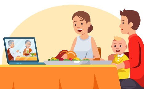 - Host a virtual Thanksgiving meal with friends and family who don’t live with you.