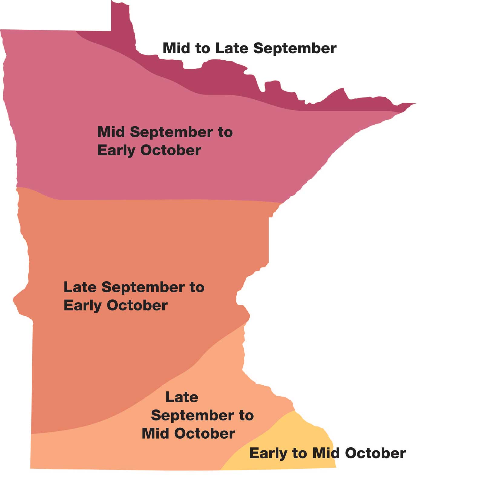 Use the DNR’s Fall Color Finder at www.dnr.state.mn.us/fall_colors/index.html to find areas in Minnesota with peak fall color. The color finder is updated weekly through October.