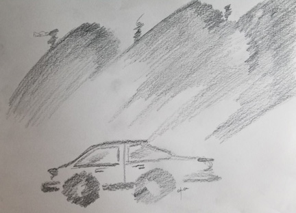 Just then, a draft of wind brushed over their car in one sweeping motion. The roof of the car thundered as if they were under the force of a humongous vacuum. Trees on the side of the road waved violently, like caught in a storm.
