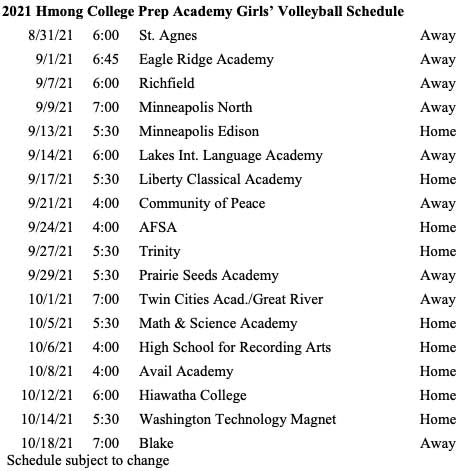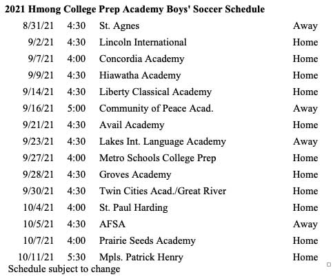 Hmong College Prep Academy Girls’ Volleyball, and Boys’ and Girls’ Soccer recently began their fall 2021 seasons.