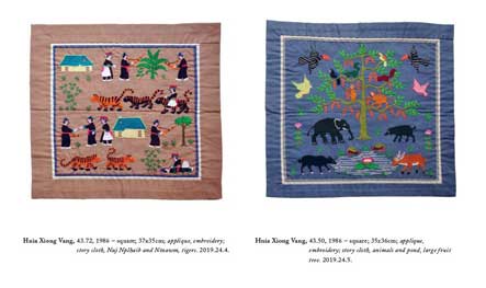 As of September 30, 2020, Hmong Archives had accessioned some 221,000 items by and about Hmong, in 13 categories, from over 1,200 donors worldwide. Paj ntaub, or flower cloth, can refer to a female name, a Christian script, a music or fiction title, an event, or a periodical, so it is difficult to determine how many are paj ntaub textiles or contain information about this central element of Hmong culture. A full list of paj ntaub textiles and additional objects among the Hmong Archives’ complete collection can be found at the Hmong Archives website. To find more information on the operating hours of the Hmong Archives and to schedule a meeting, you can visit https://hmongarchives.org/