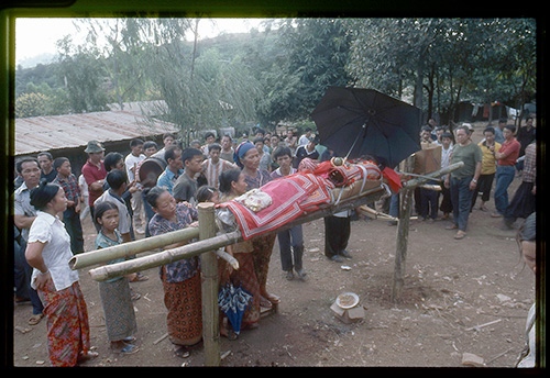 Sleep in the Hmong refugee camp Ban Vinai was often interrupted by distant wailing and weeping that slowly seemed to get gradually closer and louder. Then one could hear murmurs of a crowd gathering in the dark. Then, after drifting back to sleep, sometime before dawn a drum would start thumping a steady beat. It meant another death, grieving and mourning would follow in the days ahead. Sometimes quite a few days.
