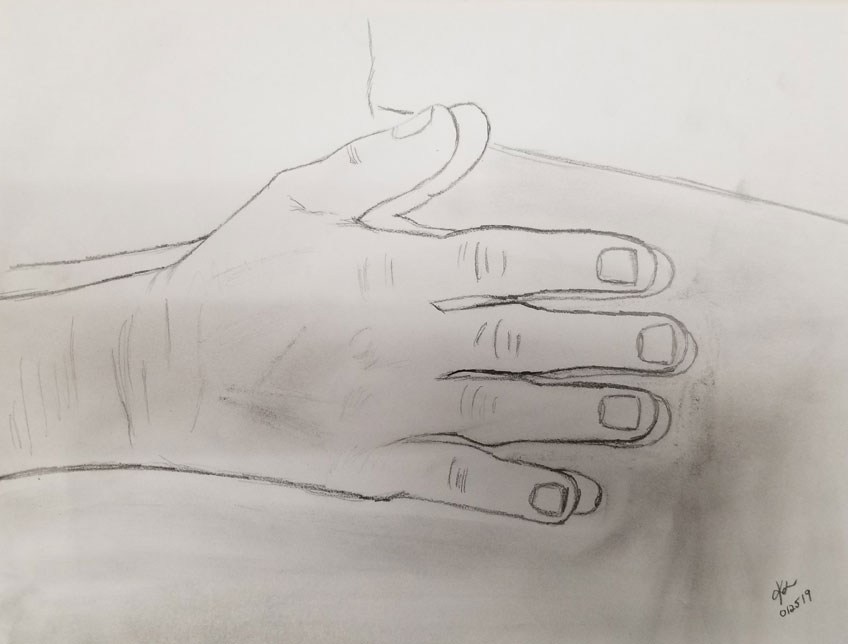 “Please, don’t be nervous,” he said. His hands reached across the table to collect the shoe. His fingers were long and thick, his nails rectangular and neatly trimmed. The peak of his knuckles and even on the inside of his palms were callused. Perhaps he was a hard worker or maybe he partook in much fieldwork. They were so unlike her soft, small hands. As she surveyed them, she realized that even her own father hadn’t the same roughness and marks on his hands. His fingers were so thick and well formed; the creases on each finger joint were so dried and cracked, layers of moisturizer would not have done them justice.