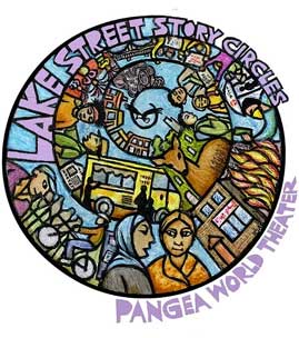 Pangea World theater was pleased to present Lake Street Story Circles 2020. Ten artists came together to hold Story Circles and create new performance work about life, spirit, resistance, power, politics, vision, relationships, history, healing, business, home, time, nature, weeds, wants, needs, survival and joy. Grounded on Lake Street, grounded in Minneapolis, grounded in story, in place, and each other.