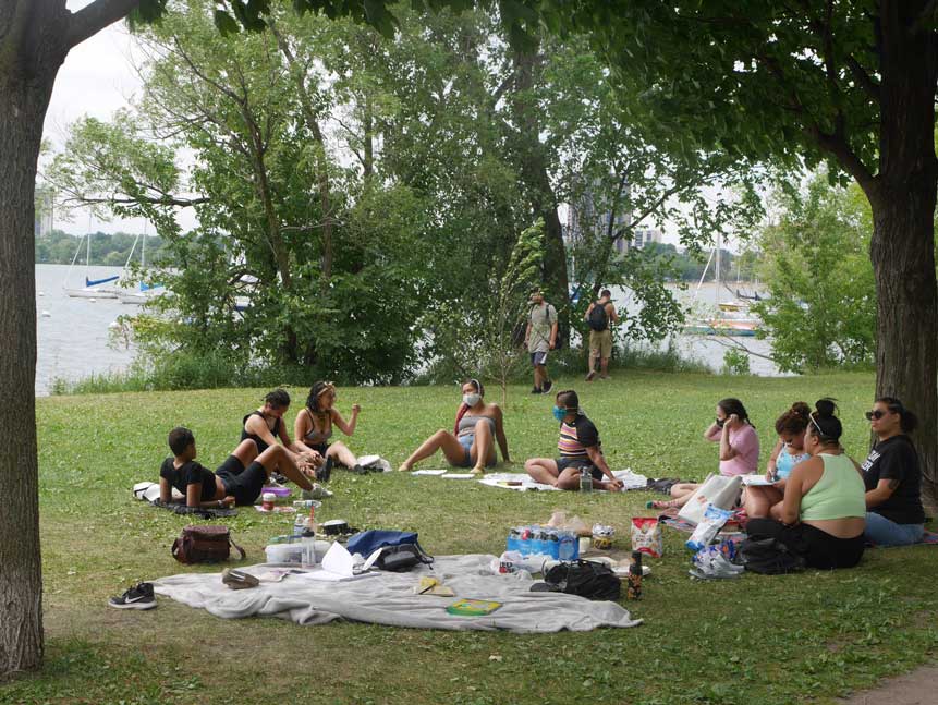 Each artist in the cohort spent the summer holding Story Circles and creating songs, plays, poems, images and installations. Through conversations, art installations, and socially distanced community gatherings, they put their ear to the ground on Lake Street and held their community close, all in response to current events in their city and around the world.