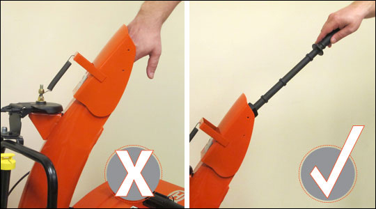 Do you have a clean out tool or stick? NEVER put your hands inside the auger or chute. Use a clean out tool (or stick) to unclog snow or debris from your snow thrower.