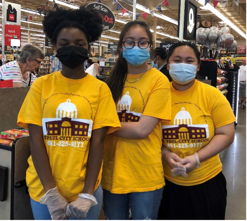 The COVID-19 crisis has disrupted every aspect of our lives and our young people are some of the most disproportionately affected by the global pandemic. The coronavirus pandemic has made the practice of social distancing the norm, created stress and isolation especially among the old and young. St. Paul City students are no exception. Our students volunteered several times each year to bag groceries for customers at area grocery stores, but COVID-19 put a halt to all school activities in March 2020. Students were eager to start volunteering again and jumped right in when their neighborhood Cub Foods gave them the green light in July 2021. They love interacting with the customers and the cashiers. They always look forward for more volunteer opportunities and ways to give back to the community.