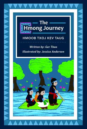 The first bilingual version of The Hmong Journey was published in 2018, then a complete Hmong version Hmoob Txoj Kev Taug published in the summer 2020. These books are historical, realistic fictional books told from the perspective of a Hmong grandma to her grandchild in the form of a bedtime story about Hmong life and the family’s journey, first from Laos to Thailand, escaping the Secret War and persecution, and finally immigrating to America. As Thao described, “This story was written to provide a mirror for Hmong students to see themselves in literature, as well as a window for non-Hmong students to learn about the Hmong people and to understand the journey Hmong families took from Laos and Thailand to get to America for the opportunity for a better life and future.”