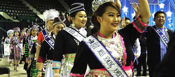 Such events will be dearly missed. And also undoubtedly missed are the delicious iconic foods such as steaming hot purple sticky rice with Hmong sausage diagonally sliced, papaya salad made to spice level perfection, and creamy coconut iced tricolor. But a crucial part of the tradition of the coliseum Hmong New Year’s festival is its beauty and skill pageant for girls and the Prince Charming pageant for boys. Throughout the years, skillset of the participants have ranged from singing, dancing, and musical instrument talents, to cultural chanting, storytelling, and qeej playing. Then often follows the answering of a political, social, or communal question selected at random and then a statement of communal purpose if granted the title. A panel of judges gives scores and final winners are selected. Such an exhibition will be greatly missed this year.