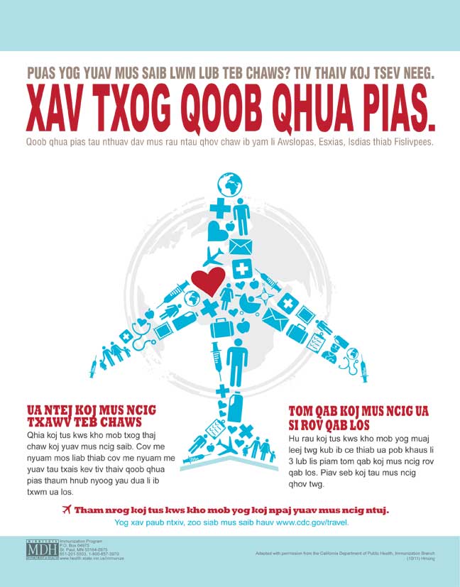 Yog xav paub ntxiv, mus xyuas lub vej xaij www.cdc.gov/travel.